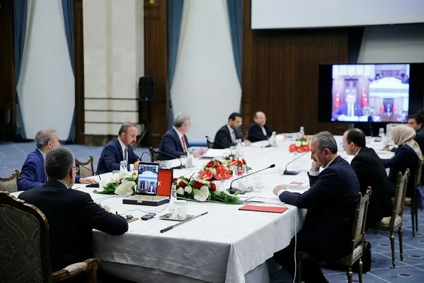 Tarabya'daki Huber Köşkü'nde telekonferans yöntemiyle gerçekleştirilen toplantıda İletişim Başkanı Fahrettin Altun ve Cumhurbaşkanlığı Sözcüsü İbrahim Kalın da yer aldı.