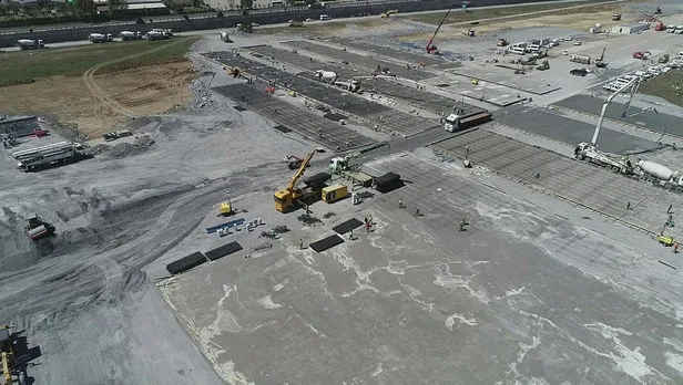 Son dakika haberi... Atatürk Havalimanı’nda inşasına başlanan bin yataklı hastanenin zemin betonu dökülmeye başlandı. Aralıksız şekilde süren hummalı çalışma havadan görüntülendi.