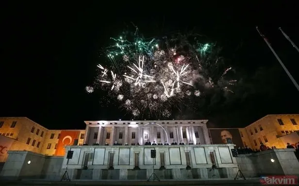 TBMM'nin açılışının 100. yılı dolayısıyla saygı duruşu ve İstiklal Marşı'nın ardından ışık, lazer ve havai fişek gösterisi düzenlendi.