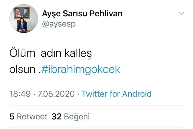 Terör örgütünün talimatıyla ölüm orucuna girip hayatını kaybeden İbrahim Gökçek'e ilginç bir isimden destek geldi. İzmir Karşıyaka Hâkimi Ayşe Sarısu Pehlivan, İbrahim Gökçek ardından ağıt yakarcasına paylaşımlarda bulundu.
