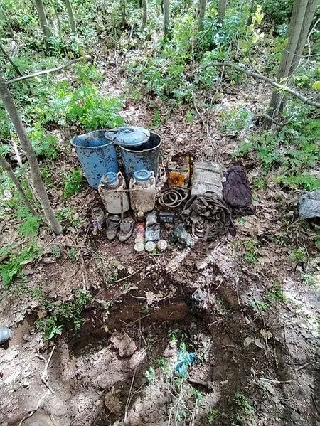 "Operasyonda toprağa gömülü 2 plastik bidon içerisinde 40 kilogram gübre, akü, 6 kesilmiş tüp başı, 50 metrekare naylon, sırt çantası, 2 çift ayakkabı, 5 metre bel kuşağı, 50 kilogramlık 2 plastik kova, cam kavanoz, 2 diş macunu, 20 hap, sabun, 21 kilogram çeşitli gıda malzemesi ve 4 paket maya ele geçirilmiştir. Malzemeler, Cumhuriyet Başsavcılığının talimatıyla yerinde imha edilmiştir."