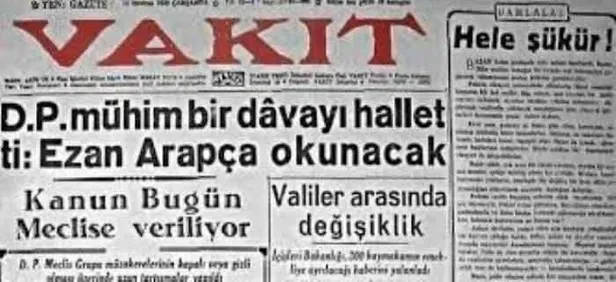 Menderes 22 Mayıs 1950 tarihindeki ilk meclis toplantısında, "Ezan yasağını hemen kaldıracağız" demişti ama Cumhurbaşkanı Celal Bayar, "İlk icraatınız ezanı Arapça okutmak olursa, endişe ederim ki bu son icraatınız olabilir" diye garip bir uyarıda bulunmuştu! Menderes ise, "Tek icraatım da olsa ezanı aslına döndüreceğim" cevabını vermişti. Meclis önünde toplanan vatandaşların yoğun desteği üzerine Celal Bayar tutumunu değiştirmiş, "Halledelim" demişti.