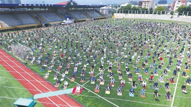 Sosyal mesafe yüzünden cami avlularının yanı sıra meydanlar ve stadyumlar da hıncahınç doldu.