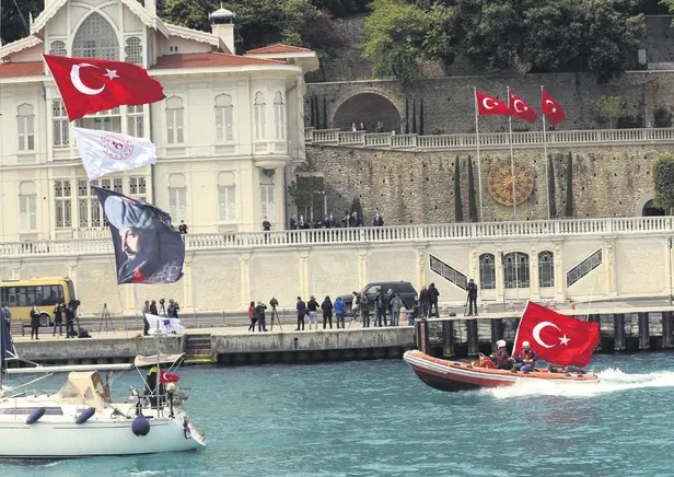 Tekneler, Türk bayrağı ile Fatih Sultan Mehmet fotoğrafları taşıdı.