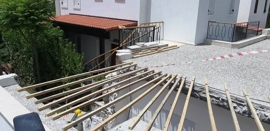Muğla Çevre ve Şehircilik Müdürlüğü ve Bodrum Belediyesi koordinesi ile yıkımına başlanan villanın 'havuz, pergole, asma balkon ve çardak' bölümleri 4 gündür 6 işçi tarafından yıkılıyor.