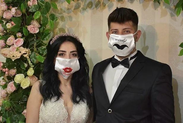 CORONAVİRÜS aşıkları da ayırdı. Düğünler yasaklandı. Çiftlerin kullanılması için gelin ve damatlığa uygun maskeler tasarlandı. İzmir'de yaşayan nişanlı çift Cengizhan Ulaş (22) ve Duygun Daşkıran (22) da en mutlu günlerine 'groom' (damat) ve 'bride' (gelin) yazılı maskelerini takarak hazırlandı.