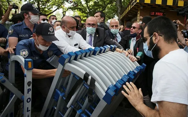 Polisler, koronavirüs nedeniyle gösteri ve eylemlere izin vermezken, avukatlar polise yönelik "Parkı aç, parkı aç" sloganı attı.