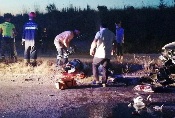 Kocaeli'nin Gebze ilçesinde 2 aracın ters yöne girerek karşı şeritten gelen otomobil ile kafa kafaya çarpışması sonucu meydana gelen trafik kazasında 7 kişi yaralandı. Kaza sonrası bölge adeta savaş alanına dönerken, yola savrulan yaralılara ise sağlık ekipleri müdahale etti.