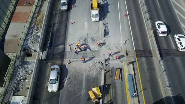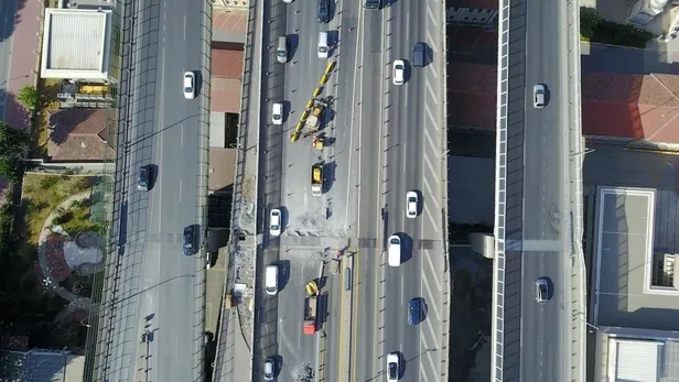 İkinci aşamada aynı yolun sol şeridi yine 7 gün boyunca kapalı olacak. Bir ay boyunca sürecek olan çalışmalar havadan görüntülendi. Çalışmalar nedeniyle trafik yoğunluğu yaşanıyor.