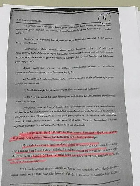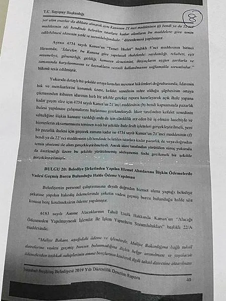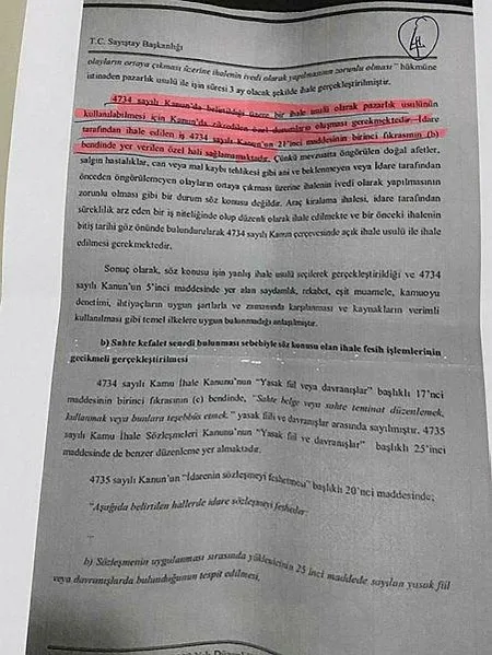 Ancak idare tarafından yürütülen süreç yukarıda da özetlendiği üzere bu şekilde yürütülmemiş, sözleşmenin feshi gecikmeli bir şekilde yapılmıştır" denildi. Öte yandan bu süreçle ilgili açılan soruşturmanın İstanbul Cumhuriyet Başsavcılığınca sürdürüldüğü öğrenildi.