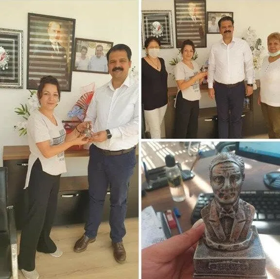 CHP Konak İlçe Başkanı Çağrı Gruşçu, ilçedeki muhtarlara gerçekleştirdiği ziyaretlerde Atatürk heykeli hediye etti. 'Albay Mustafa Kemal' yazılı heykelin Mustafa Kemal Atatürk'e benzemediğini söyleyen AK Parti İzmir İl Başkanı Kerem Ali Sürekli, tepki gösterdi. Konak'ın Ulubatlı Mahalle Muhtarı Şengül Kahramaner'in ziyarete ilişkin fotoğrafları sosyal medya hesabından paylaşmasıyla ortaya çıkan tartışmada, birçok kişi büstün Atatürk'e benzememesi konusunda eleştiride bulundu.