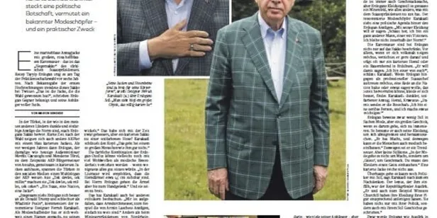 Die Welt gazetesinde, 'Erdoğan'ın kazanan ceketi moda dünyasını nasıl etkiliyor?' başlıklı bir yazı yayımlandı. Başkan Erdoğan'ın 'ekose desenli ceketlerini' konu alan yazıda, birçok ülkede olduğu gibi Türkiye'de de koyu ve tek renk takım elbiseler norm olarak görülürken, Erdoğan'ın ekose desenli ceketlerinin dikkat çektiği belirtildi. Yazıda, Erdoğan'ın siyasette olduğu gibi kıyafet konusunda da yerleşik normların dışına çıktığı ve kendi vizyonunu ortaya koyduğuna işaret edilirken, görüşlerine yer verilen moda tasarımcısı Ferruh Karakaşlı, "Erdoğan giysileriyle 'vizyonları olan farklı bir şahsım. Norma bağlı kalmıyorum' mesajı veriyor" değerlendirmesinde bulundu.