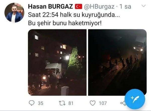 Ak Parti Eskişehir İl Başkan Yardımcısı Hasan Burgaz "Bu şehir bunu hak etmiyor" diyerek su bidonu elinde su kuyruğuna giren hemşehrilerinin fotoğraflarını Twitter'da yayımladı.
