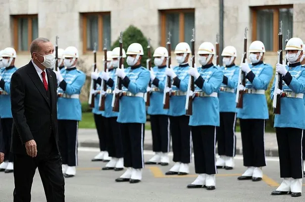 Cumhurbaşkanlığı Muhafız Alayı Onur Kıtası'nı selamlayan Erdoğan, daha sonra Genel Kurul Salonu'na geçti.