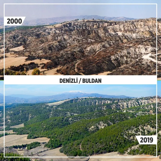* 2000'de Denizli Buldan'da bin 458 hektar alanda 2 milyon kızılçam fidanı
