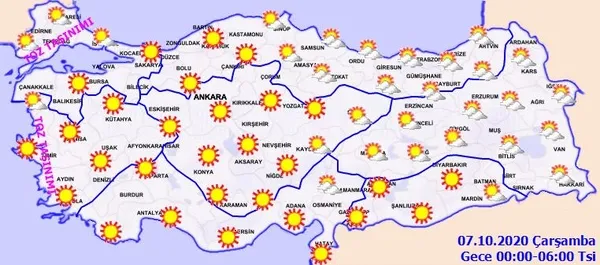 Meteoroloji Genel Müdürlüğü tarafından yapılan açıklamaya göre "Ülkemizin genelinin az bulutlu ve açık, zamanla güneydoğusu ile batı kesimlerinin parçalı bulutlu, yarın (Çarşamba) öğle saatlerinden sonra Afyonkarahisar, Isparta, Eskişehir, Bolu, Van ve Hakkari çevrelerinin yerel olmak üzere sağanak ve gök gürültülü sağanak yağışlı, diğer yerlerin az bulutlu ve açık geçeceği tahmin ediliyor. Ülkemizin batı kesimlerinde Kuzey Afrika kaynaklı yer yer toz taşınımı görülmesi beklenmektedir." denildi.