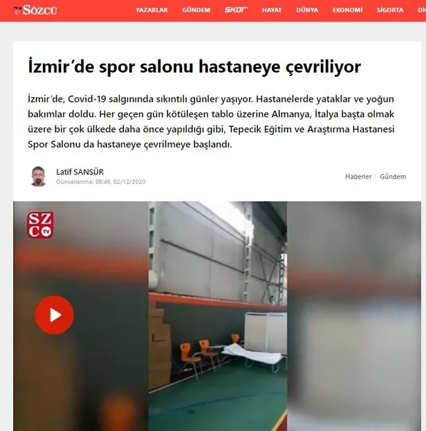 İzmir Valiliğinden Sözcü'nün "spor salonu salgın nedeniyle hastaneye çevrildi" iddiasına yalanlama!