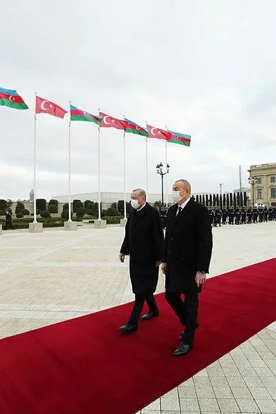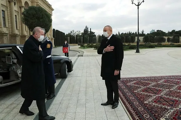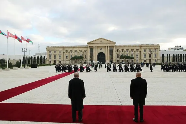 SON DAKİKA: Başkan Erdoğan Aliyev tarafından törenle karşılandı