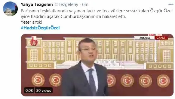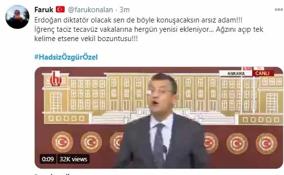 Özel'in çizgiyi aşan açıklamaları sosyal medyada da tepkilere neden oldu. Twitter'da yorum yağmuru yapan vatandaşlar, "Partisinin teşkilatlarında yaşanan taciz ve tecavüzlere sessiz kalan Özgür Özel iyice haddini aşarak Cumhurbaşkanımıza hakaret etti.