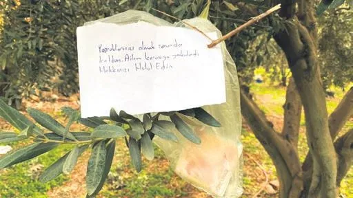 BURSA İznik'te bir vatandaş Veysel Çil'in zeytin bahçesine gitti. Corona'ya iyi gelen zeytin yapraklarından topladı, 150 lira ile "Hakkınızı helal edin" notunu bırakıp gitti. Önceki gün bahçesine giden Çil, nottan çok etkilendi