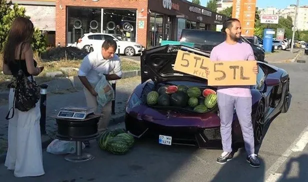 Sosyal medya fenomeni olan kişi daha önce Ferrari marka lüks aracı ile 5 liraya karpuz satmaya kalkınca ceza yemişti.