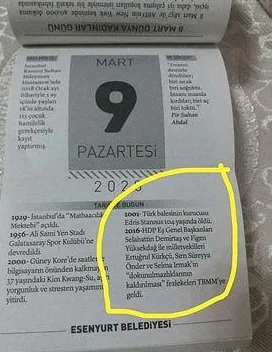 Takvimin 'Tarihte Bugün' kısmında 18 Mayıs tarihinin takvim yaprağının arka yüzünde, terör örgütü THKP-C'nin kurucusu Mahir Çayan'ın yakalanışı ve cezaevinden kaçışına yer verildi. 28 Mayıs tarihini gösteren takvim yaprağında ise TKP/ ML Terör Örgütünün sözde kurucusu olan İbrahim Kaypakkaya'nın yakalanıp işkence yapıldığı ve kurşunlanarak öldürüldüğü ifadeleri yer aldı.