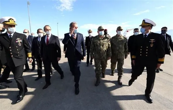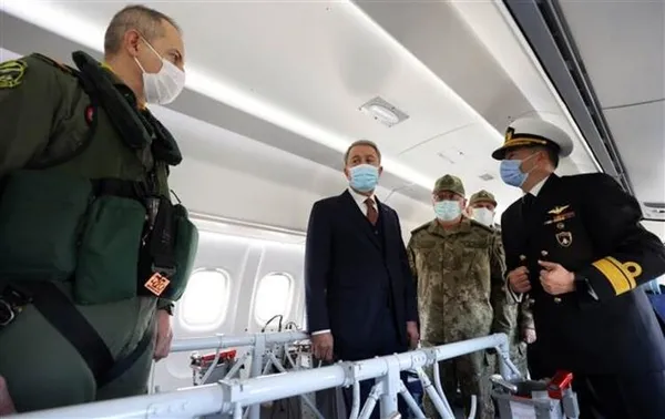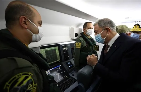 Görev uçuşunun ardından Bakan Akar beraberindeki Genelkurmay Başkanı Orgeneral Yaşar Güler ve Kara Kuvvetleri Komutanı Orgeneral Ümit Dündar ile uçakta incelemelerde bulundu.