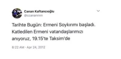 Tarih ve arşivler tarafından yalanlanan sözde 'Ermeni Soykırımı'nı savunan tweet attı.