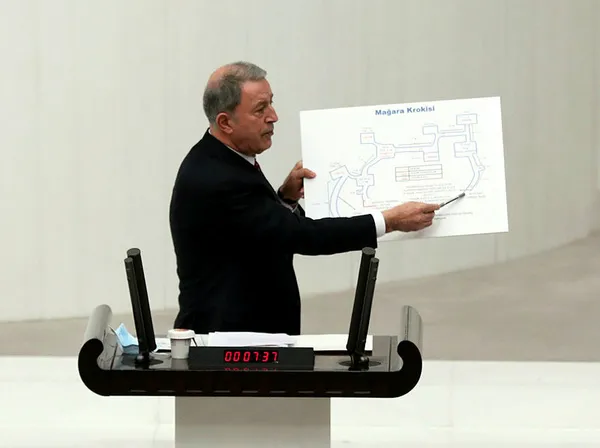 "Mağara operasyonları çok daha zor. Bilmediğiniz bir alan, bilmediğiniz bir alanda askerin ilerlemesi gerekiyor... Karanlıkta karşıda kimin olduğunu bilmeden askerlerimizin, Mehmetçiğin ilerlemesi ciddi birtakım zorluklar içeriyordu. Ateş de geliyor, ateşle cevap veriliyor. Karanlık ve bu zor şartlarda Mehmetçik bu görevi başardı. Demir kapıların da uygun bir tahriple tahrip edilmesi, parçalanması, açılması gerekiyor. Olabildiğince güvenli ve teslim alma esasına dayalı bir şekilde ilerleme geliştirildi ve nihayet 13 vatandaşımızın şehit edildiği bölmeye girildi. Ve hakikaten oraya girildiğinde vatandaşlarımızın naaşları yerde görüldü. Giriş ve çıkış emniyete alındıktan sonra naaşlar mağaradan dışarı tahliye edildi."
