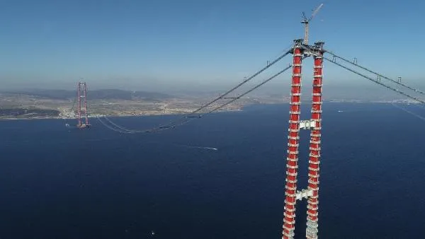 Başkan Recep Tayyip Erdoğan tarafından temeli 18 Mart 2017 tarihinde atılan 1915 Çanakkale Köprüsü tamamlandığında Çanakkale Boğazı'nda Avrupa ve Asya kıtaları ilk kez birbirine bağlanmış olacak. 2023 metrelik orta açıklığıyla dünyanın en uzun asma köprüsü unvanına sahip olacak 1915 Çanakkale Köprüsü'nün 318 metrelik kuleleri geçen yıl Mayıs ayında Cumhurbaşkanı Erdoğan'ın video konferans ile katıldığı törenle tamamlandı. Kısa bir süre önce de ana halatların montajı sırasında kullanılacak 4 bin 330 metre uzunluğundaki kedi yolu tamamlandı. Ardından ana kabloların montajına başlandı.