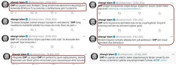 CHP'li vekiller, parti yönetimine Cihangir İslam'ın söylemleri ve yazıları ile CHP'yi eleştiren mesajlarını da hatırlattı.