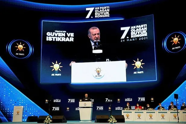 Erdoğan, Ankara Spor Salonu'nda gerçekleştirilen AK Parti 7. Olağan Büyük Kongresi'ne katılarak partililere hitap etti. Konuşmasına tüm illeri tek tek selamlayarak başlayan Erdoğan, kongreye katılanların tüm Türkiye'yi, tüm coğrafyayı, tüm dünyayı temsil ettiğini söyledi. Başkan Erdoğan, selamlama konuşmasına şöyle devam etti: