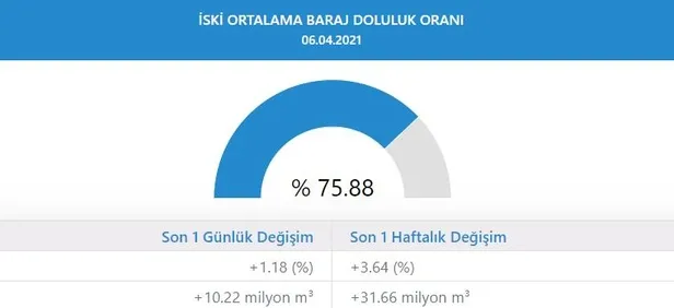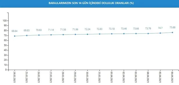 Kente su sağlayan barajlardaki doluluk oranı bugün itibarıyla yüzde 75,88 olarak ölçülürken, su oranı 2020 ortalamasının üzerinde seyrediyor.