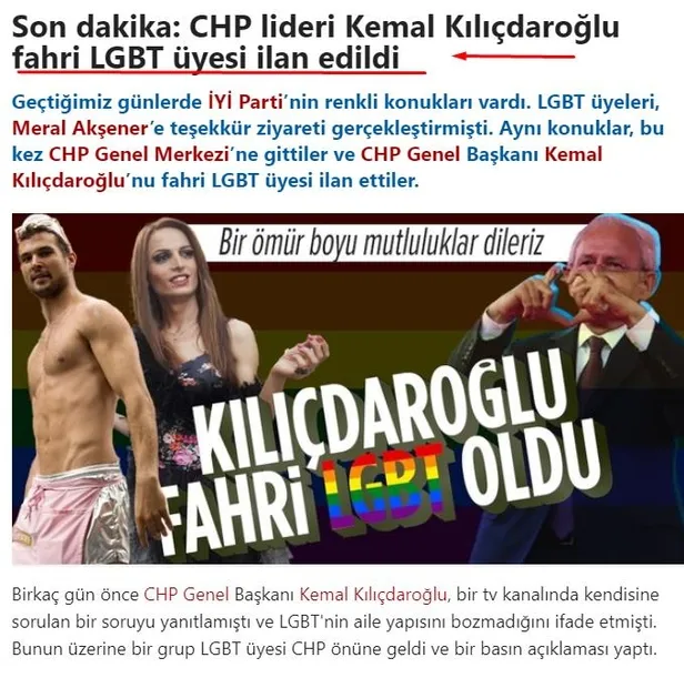 Söz konusu haber, "CHP lideri Kemal Kılıçdaroğlu fahri LGBT üyesi ilan edildi" başlığıyla verilerek tamamen CHP önünde açıklama yapan kişilerin sözleri baz alındı.
