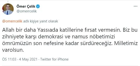 Sayın Cumhurbaşkanımız, milletimizin gönül divanında yerini almıştır. Yassıada zihniyetinin tehditlerinin milletimiz nezdinde bir karşılığı yoktur. Bu zihniyetle mücadele etmeye en kararlı şekilde devam edeceğiz. Bunlara sessiz kalmak millete ihanettir.