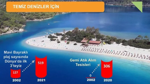 "Bakanlık olarak denizlerimizin korunması kapsamında birçok çalışma yürütüyoruz. Kara kaynaklı atıkların yüzey suları ile taşınmasını önlemek adına; düzenli depolama hizmeti alan belediye nüfus oranı yüzde 83'e çıkardık. Plastik poşetlerin ücretlendirerek kullanımı yüzde 75 azalttık."