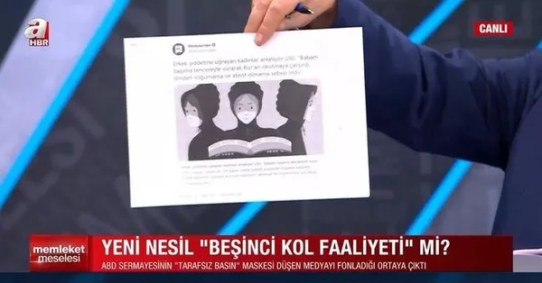 Ruşen Çakır, Türkiye'de doğmuş büyümüş, bu ülkenin ekmeğini yemiş, suyunu içmiş bir gazeteci. Habere bakar mısınız? Erkek şiddetine uğrayan kadınlar anlatıyor. Başörtülü kadınların fotoğrafını vermiş. 'Babam başıma tencereyle vurarak Kur'an okutmaya çalışırdı, dinden soğumama ve ateist olmama sebep oldu' Bu bir gazetecilik mi? Bu haberin hedefi ne? Bunlar sipariş haberler! Ruşen Çakır bu haber için ABD'li vakıftan ne kadar hibe aldı?