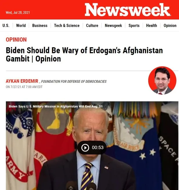 CHP'nin eski vekili ve firari FETÖ sanığı Aykan Erdemir, Newsweek’te kaleme aldığı yazısında Türkiye’yi hedef aldı. FETÖ'cü Erdemir, ABD Başkanı Joe Biden’e, Afganistan'daki Kabil Havalimanı'nın işletilmesi ve güvenliğinin Türkiye’ye bırakılmaması için çağrı yaptı. Aykan Erdemir, Amerika'da elebaşı Fetullah Gülen'in emrinde Türkiye aleyhine komisyonlar dernekler kurmuş olmasıyla ve Türkiye aleyhine propagandalar yapmasıyla biliniyor.