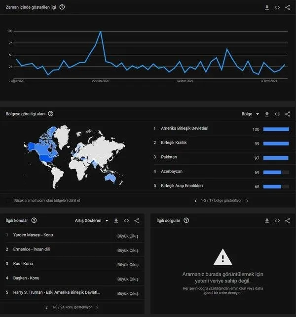 Bahsi geçen etiket ile yapılan paylaşımların yoğunluğuna bakıldığında ise öne çıkan ülkeler arasında; ABD, İngiltere, Pakistan, Azerbaycan ve Birleşik Arap Emirlikleri yer aldı.