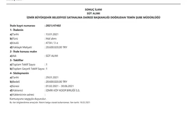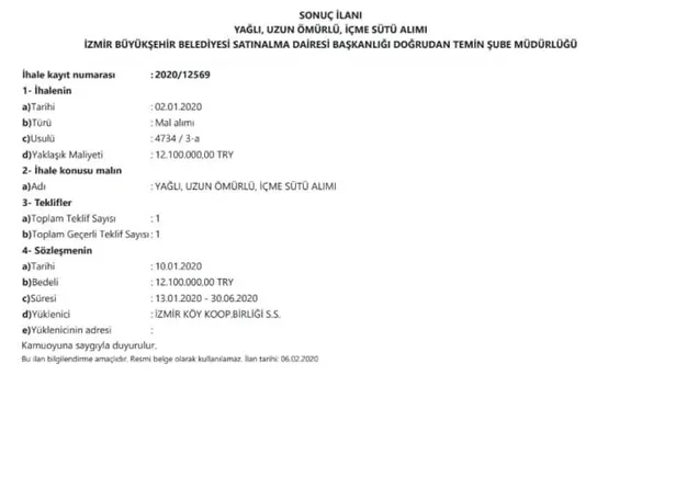 Neptün Soyer'li Köy Kop daha önce de İzmir Büyükşehir Blediyesine 21 Ocak 2021'de 20 milyon 600 bin 020 liralık süt alımı gerçekleştirmişti. Soyer'in eşinden aldığı süt alımları bununla da sınırlı kalmamıştı. İzmir Büyükşehir Belediyesi 10 Ocak 2020 tarihinde 12 milyon 100 bin, 20 Temmuz 2020 tarihinde de İzmir Köy Koop'tan 5 milyon 163 bin 500 liralık süt alımı gerçekleştirmişti. Alımların hepsinin de 4734 sayılı kamu ihale kanununun 3-a maddesi üzerinden ihale ilanına çıkılmaksızın doğrudan yapılması dikkat çekmişti. Her üç alımda da teklif sayısının sadece Köy Koop'la sınırlı kalması ve alımların tamamının hiçbir eksiltme olmadan kuruşu kuruşuna belediyenin belirlediği muhammen bedel üzerinden yapılmış olması bu kadar da olmaz dedirtmişti.