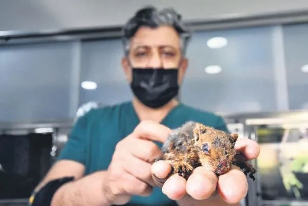 Antalya'da alevlerden canlı kurtulan 1 aylık sincap, hayvanseverler tarafından tedavisi için kentteki özel kliniğe getirildi. Yavru sincabın üçüncü derece yanıklarının iyileştirilmesi için çaba harcanıyor. Dumandan ciğerleri etkilenen sincap yoğun bakımda oksijen takviyesiyle yaşatılmaya çalışılıyor.
