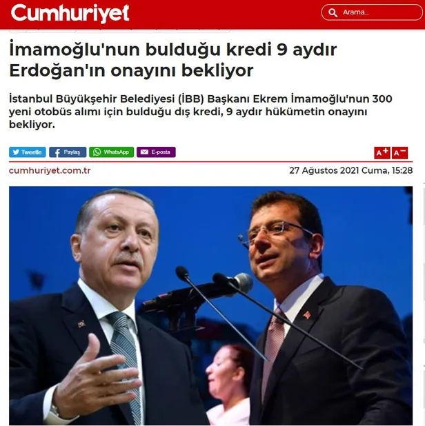 CHP'li İBB Başkanı Ekrem İmamoğlu, geçtiğimiz aylarda belediye hizmetlerinin kamu tarafından engellendiğini iddia etmiş ve otobüs alımı kredisinin Başkan Erdoğan tarafından onaylanmadığı söylemişti.