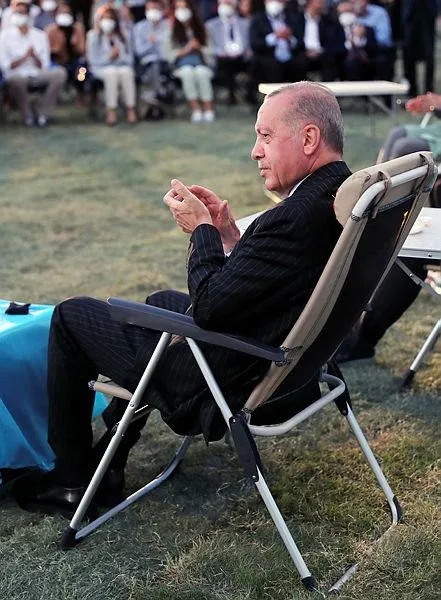 Başkan Erdoğan, klarnet virtüözü Serkan Çağrı ve halk müziği sanatçısı Elif Buse Doğan'ın çeşitli türküleri seslendiği gecede da bazı türkülere de eşlik etti.