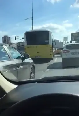 Yoldan geçen sürücü tarafından kayda alınan görüntülerde, arıza yapan İETT aracının trafiği kitlediği görüldü.