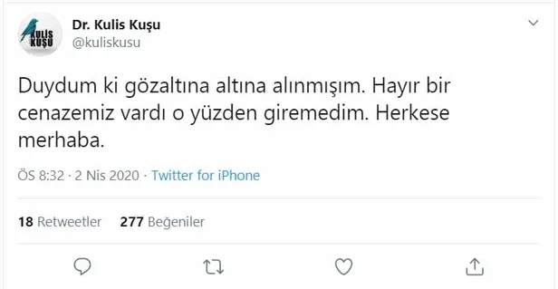 Bunlarla birlikte Ümit Kaya'nın provokatif paylaşımlarda bulunan kuliskusu adlı hesabın sahibi olduğu da gözaltına alınmasının ardından ortaya çıktı. Ümit Kaya'nın sorgulanmasına devam edilirken Kulis Kuşu hesabından paylaşım yapılmaya devam edildi. Kaya'nın sorgusunda Furkan adlı kişiyle ortak olarak bu hesabı kullandığını itiraf etti. Kulis Kuşu hesabını birlikte yönettiğini belirttiği Furkan adlı arkadaşının FETÖ bağlantılı Furkan Güngör olduğu öğrenildi.