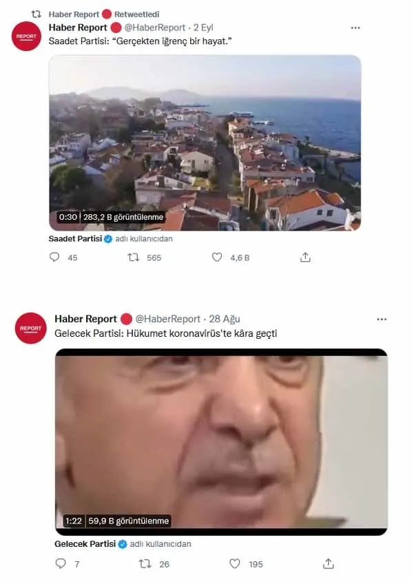 Tüm bunlarla birlikte Haber Report hesabından muhalif partilerin para karşılığında viral reklamları yapılmaya devam ediyor.