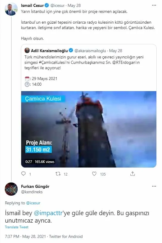 Bu haber üzerine Furkan Güngör FETÖ'cü kacsaatoldu1881 hesabı ile alakalı 2018'de attığı tweeti gündem edip FETÖ'cülerle ilişkisini gizlemeye çalıştı.