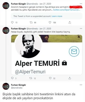 Yine Furkan Güngör bazı fenomen hesapların kimin tarafından kullanıldığını ifşa ettiğini söylüyor. Söylediklerinin doğru olup olmadığı bir soru işareti olsa da; sadece Twitter'ın bilebileceği isim bilgisini Furkan Güngör nerden ve nasıl biliyor? Twitter, Türkiye Cumhuriyeti'nin resmi makamlarına dahi vermediği kullanıcı bilgilerini bu yapıya mı veriyor?