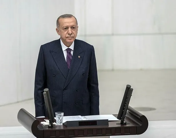 Tören kıtasını selamlayan Başkan Erdoğan, daha sonra TBMM Başkanı Mustafa Şentop ve beraberindeki bakanlarla Genel Kurul Salonu'na geçti.