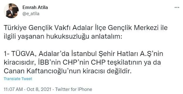 1- TÜGVA, Adalar'da İstanbul Şehir Hatları A.Ş'nin kiracısıdır, İBB'nin CHP'nin CHP teşkilatının ya da Canan Kaftancıoğlu'nun kiracısı değildir.